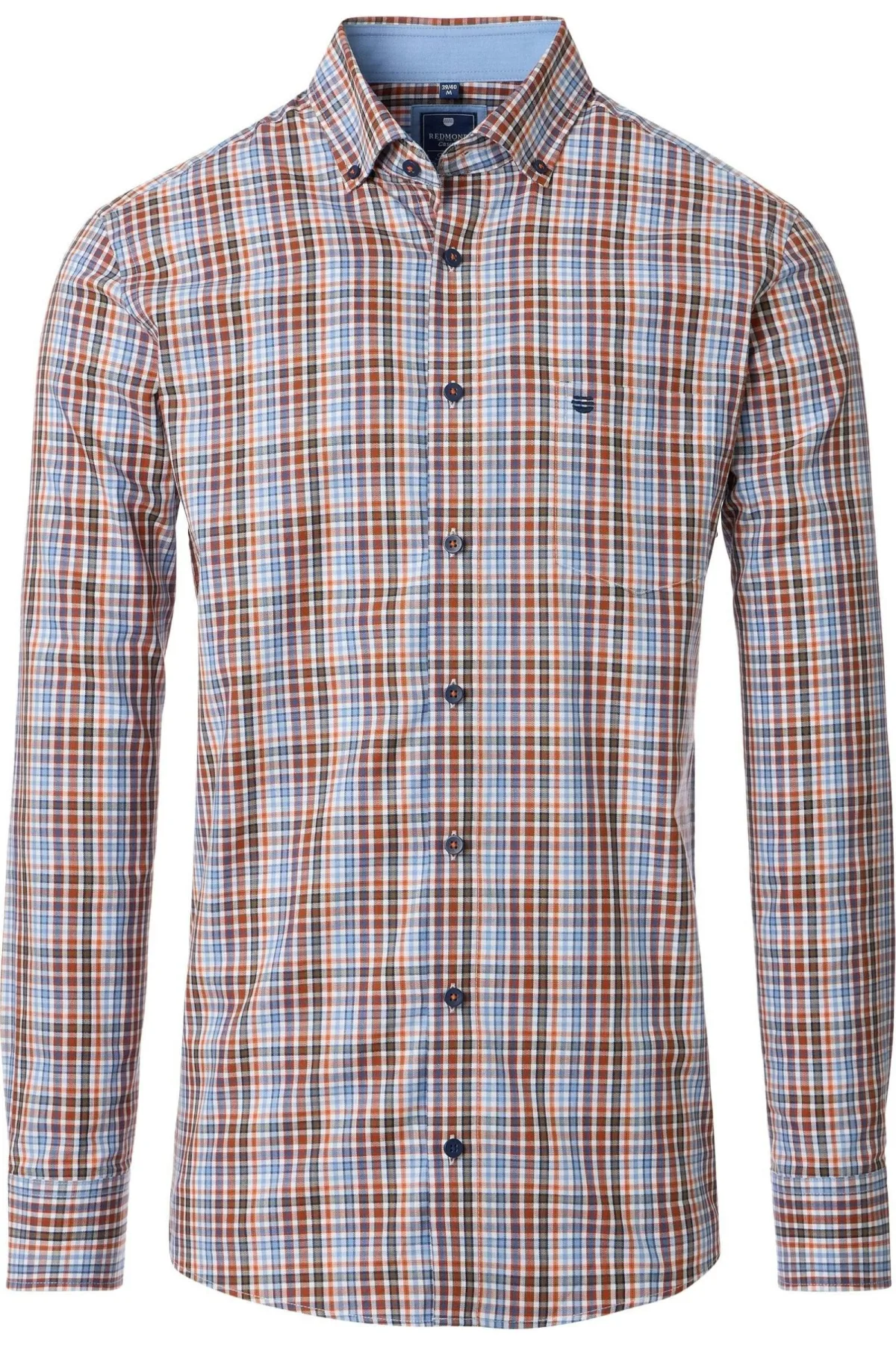 - Bij bol.com kun je Redmond comfort fit overhemd - twill - bruin - blauw - oranje en wit geruit - Strijkvriendelijk - Boord kopen voor slechts €30,45 , dat is 13% goedkoper dan bij Overhemden.com (€34,95).
