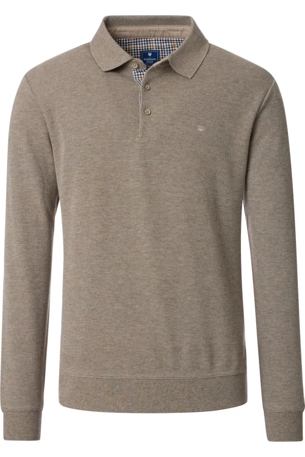Redmond Poloshirt lange mouw beige, Effen