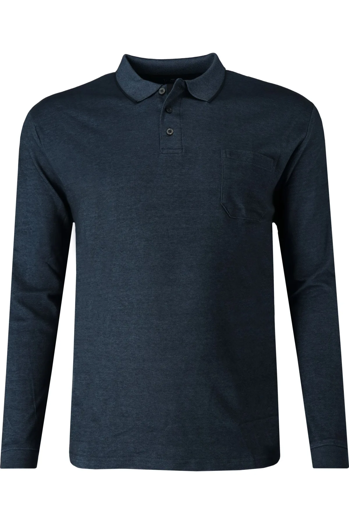 Redmond Poloshirt lange mouw blauw, Effen