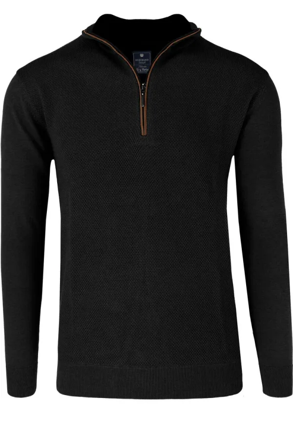 Redmond Regular Fit Half-Zip Sweater zwart, Gestructureerd Prijzen