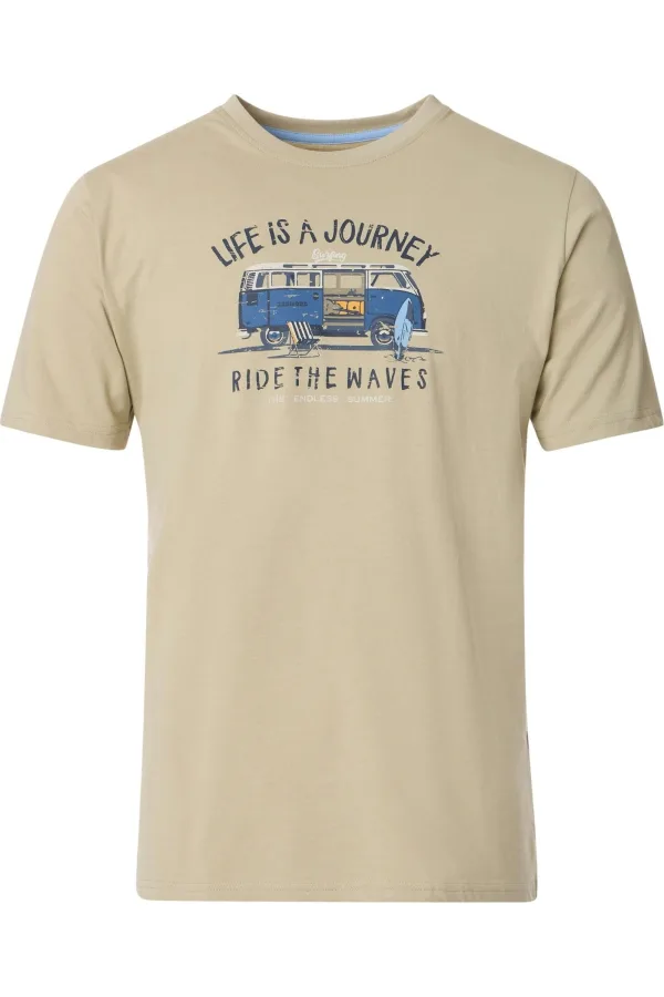 Redmond T-Shirt ronde hals beige, Bedrukt