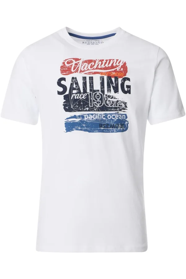 Redmond T-Shirt ronde hals wit, Bedrukt