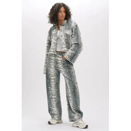 Val op met de grijs-witte Refined Department Elma barrel jeans. Deze damesjeans heeft een moderne barrel fit, waarbij de pijpen wat ronder vallen en weer toelopen naar de enkel. De combinatie van grijs en wit in dierenprint geeft de klassieke denim een eigentijdse draai. Gemaakt van 100% katoen voelt de stof stevig aan en geeft de broek een authentieke jeanslook.Kenmerken van de Elma jeansBarrel jeans model met een relaxte pasvorm rond het bovenbeen en taps toelopende pijpenLage waist voor een casual uitstraling op de heupenGrijs-witte dierenprint voor een opvallend, grafisch effectLang model, ideaal om te dragen over sneakers, laarzen of hakken5-pocket design met twee achterzakken, twee steekzakken en een muntzakjeKnoopsluiting aan de voorkant voor een klassieke jeansafwerkingVoorzien van riemlussen, zodat je de jeans eenvoudig combineert met je favoriete riemGemaakt van 100% katoenen denim voor een stevige, niet-stretch kwaliteitZo draag je deze grijs-witte barrel jeansDeze Elma jeans komt goed tot zijn recht met een eenvoudig T-shirt of een strakke top, zodat de dierenprint centraal blijft. Ook een ingetogen trui of blouse in één kleur past goed bij het opvallende patroon. Rol de pijpen iets op voor een speelse look met sneakers of draag de jeans lang over een enkellaars.Refined Department in jouw garderobeRefined Department ontwerpt kleding die inspeelt op actuele trends en tegelijkertijd draagbaar blijft in het dagelijks leven. De focus ligt op eigentijdse fits, verrassende details en materialen die aansluiten bij een moderne, vrouwelijke stijl. Met deze Elma jeans haal je een opvallend item in huis dat toch gemakkelijk te combineren is.Een karaktervolle jeans die je outfit in één keer compleet maakt.