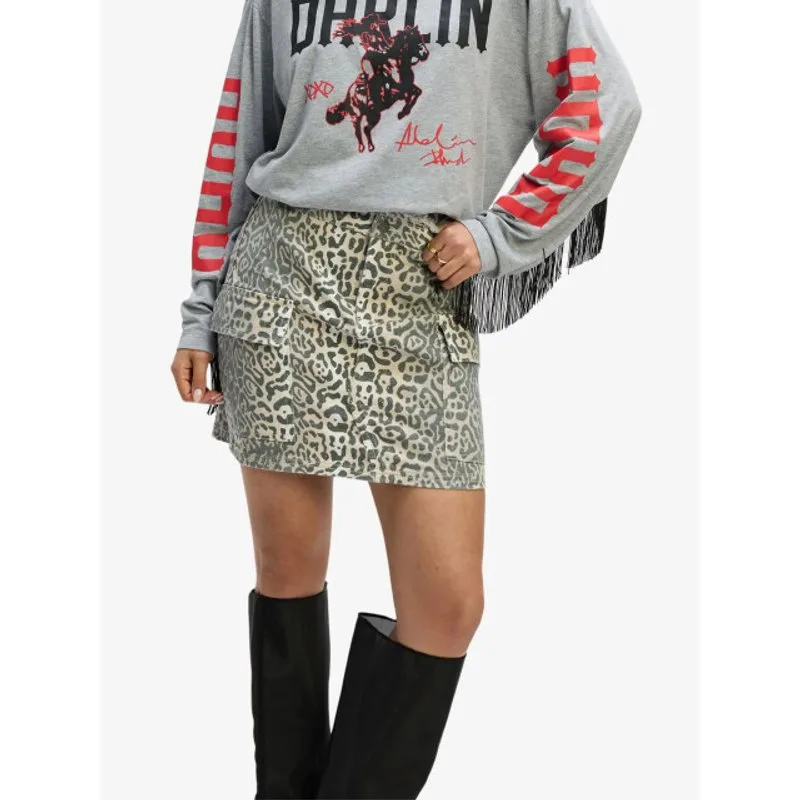 De Refined Department Hazel Rok in Leopard heeft een denim kwaliteit met cargo zakken. De rok heeft een destroyed look tailleband met een RFND logo embleem op de achterkant.