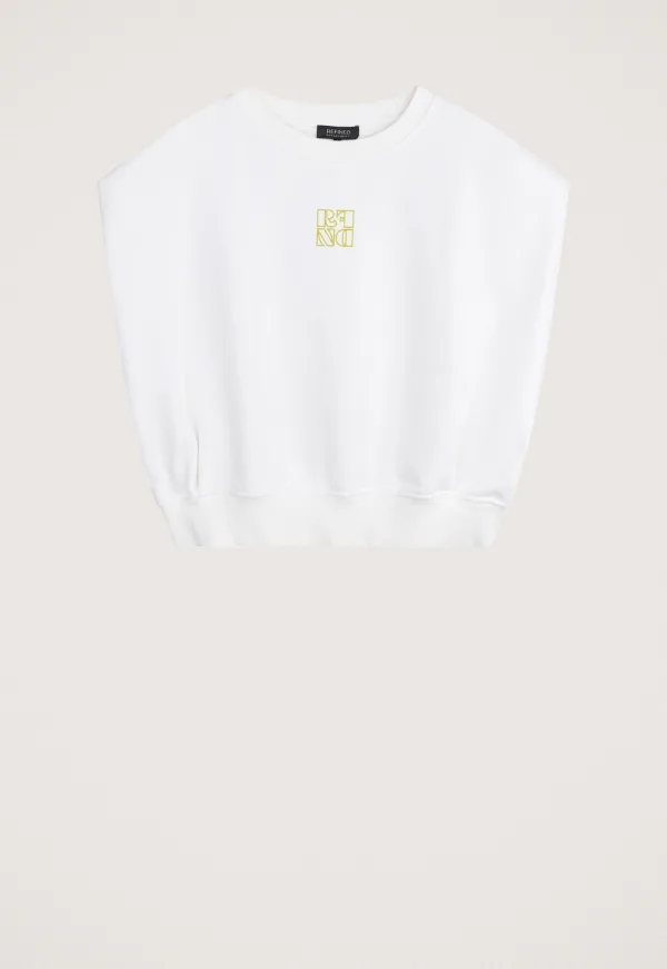 Dit is de R2603823985 Jennely Sleeveless Sweater van het merk Refined Department. Deze Sweater heeft een oversized pasvorm en is gemaakt van een comfortabele mix van 65% katoen en 35% polyester. Met een ronde halslijn en mouwloos ontwerp, straalt de sweater zowel casual als stijlvol uit. Op de borst vind je subtiele branding met het RFND-logo, wat een extra moderne toets geeft. Afgewerkt met ribboorden langs de halslijn en de onderzoom, is deze trui perfect voor een nonchalante outfit met een verfijnde uitstraling.