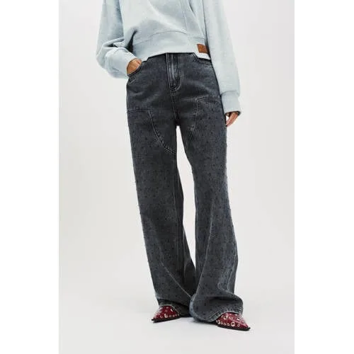 Refined Department low waist wide leg jeans grey denim met glitter