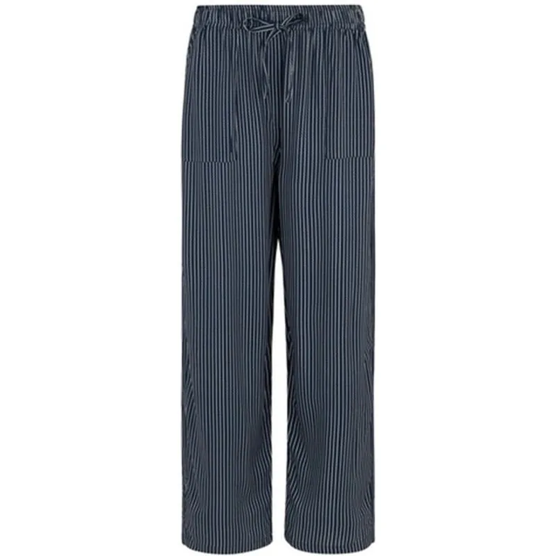 100% viscose. Stof: Geweven. Ontwerp: all-over print, streep. 120 gsm. Stoftechnologie: Lichtgewicht. Lengte: Bijgesneden. Zakken: 2 Voorzakken. Taille: Koord, Elastisch.