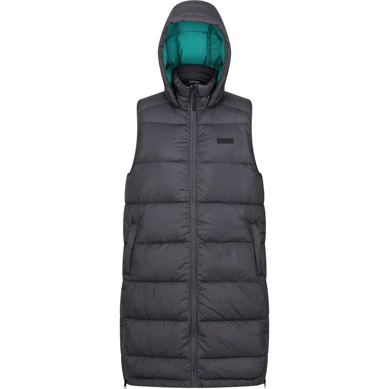 100% Polyester. Vulling: imitatie dons, veervrij, gerecycled. Ontwerp: Gewatteerd. Stof Technologie: DWR Finish, Isolerend, Weerbestendig. Halslijn: Kapitein. Zijrits. Mouwtype: Mouwloos. Kapkenmerken: 3 Stuks, Gegroeid op Kap. Lengte: Lange lijn. Zakken: 1 binnenzak, 2 onderzakken, ritssluiting. Bevestiging: Volledige ritssluiting. Duurzaamheid: Wreedheidvrij, gemaakt van gerecycleerde materialen.. 8 UK: 32 in. 10 VK: 34 in. 12 VK: 36 in. 14 VK: 38 in. 20 VK: 45 in. 18 VK: 43 in. 16 VK: 40 in.