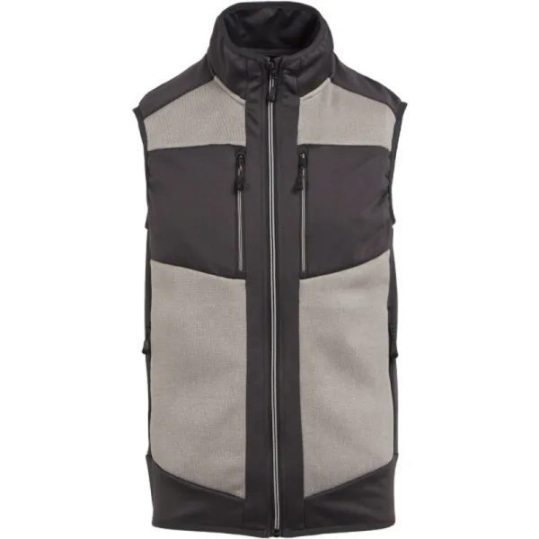 Materiaal: Polyester. Stof: Extol Stretch, Gebreid. Ontwerp: Contrastpaneel. Halsuitsnijding: Hoge Hals, Stretch Boord. Binnenritsbescherming, Stretchboord aan armsgaten en zoom. Mouwtype: Mouwloos. Pasvorm: Goede pasvorm. Zakken: 2 borstzakken, 2 zijzakken, ritssluiting. Bevestiging: Contrasterende ritssluiting, volledige ritssluiting. Duurzaamheid: Gemaakt van gerecycled materiaal. XS: 36 in. S: 38 in. M, XL: 40 in. L: 42 in. XXL: 48 in. 3XL: 51 in.