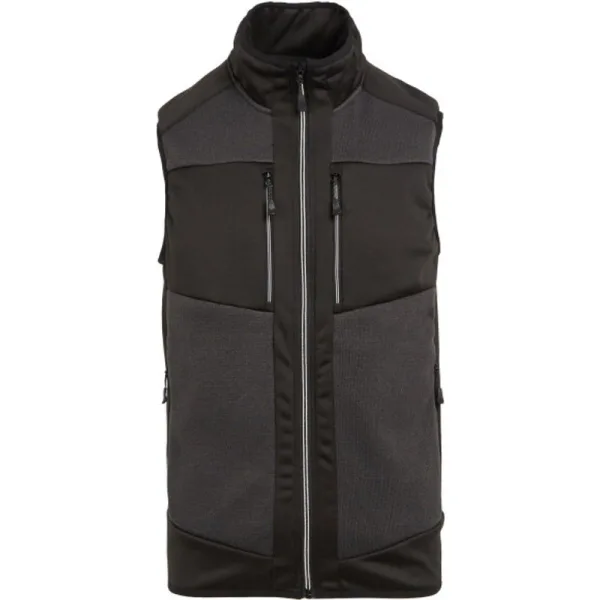 Materiaal: Polyester. Stof: Extol Stretch, Gebreid. Ontwerp: Contrastpaneel. Halsuitsnijding: Hoge Hals, Stretch Boord. Binnenritsbescherming, Stretchboord aan armsgaten en zoom. Mouwtype: Mouwloos. Pasvorm: Goede pasvorm. Zakken: 2 borstzakken, 2 zijzakken, ritssluiting. Bevestiging: Contrasterende ritssluiting, volledige ritssluiting. Duurzaamheid: Gemaakt van gerecycled materiaal. XS: 36 in. S: 38 in. M, XL: 40 in. L: 42 in. XXL: 48 in. 3XL: 51 in.