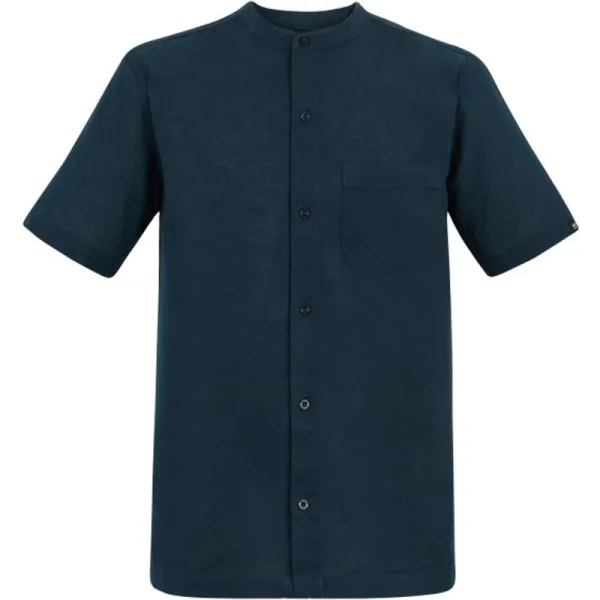 90% Katoen, 10% Linnen. Ontwerp: Logo, eenvoudig. Zakken: 1 borstzak. Sluiting: Knoopsluiting. Halslijn: Collared, Grandad. Mouwtype: Korte mouwen. Stoftechnologie: Lichtgewicht, Zacht. Rugstuk, voorste schoudernaden, zijsplitjes. Pasvorm: Relaxed model. 90gsm. S: 38 in. M: 40 in. L: 42 in. XL: 44 in. XXL: 48 in. 3XL: 51 in.