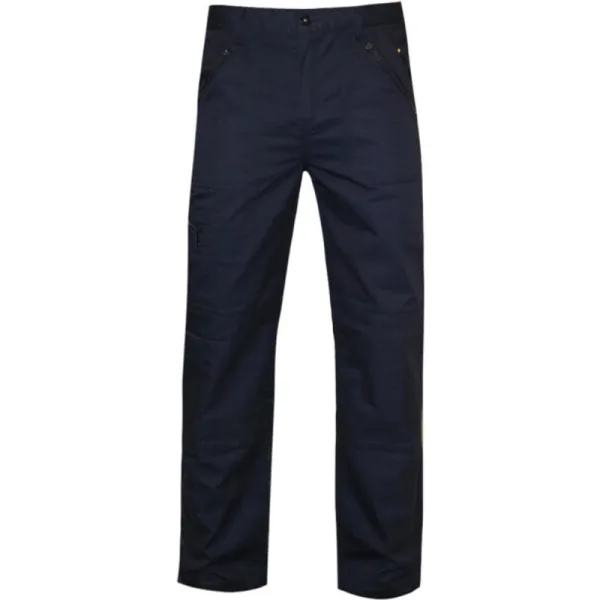 Waterdichte herenbroek van slijtvaste Polycotton stof. Gewicht van de stof 245 g/m2. Waterafstotende coating. Gedeeltelijk elastische taille. Kniebeschermerzakken. Riemlussen. Ritsvliegopening. Metalen schachtknop om CF vast te maken. 2 voorzakken, 1 met klein muntzakje. Multi-ritszakken. 1 zijvak met rits. 2 achterzakken. Versterkte kruisnaad. Versterkte naden met driedubbele stiksels. 65% Polyester, 35% Katoen. Regelmatig: 32in.