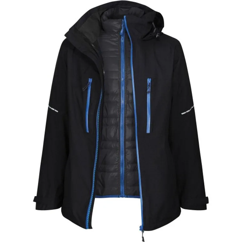 100% Polyester. Stof: Isotex, Polyamide, Polyester, Ripstop. Ontwerp: Eenvoudig. Stoftechnologie: DWR afwerking, lichtgewicht. Manchet: Verstelbaar. Ademend, Geïsoleerd, Reflecterend Detail, Shockcord Zoom, Getapete naad, Thermo-Guard, Waterdicht. Halslijn: Kapitein. Mouwtype: Met lange mouwen. Jasje/jasje: 3 in 1. Eigenschappen van de kap: Verstelbaar, Verborgen. Zakken: RFID-blokkering, 2 borstzakken, Waterdicht, 2 Onderzakken, Rits. Bevestiging: Volledige ritssluiting. Waterdichte classificatie: 10000mm. Voldoet aan de veiligheidsnorm: EN 343:2003 A1:2007 Klasse 3:2. S: 38 in. M: 40 in. L: 42 in. XL: 44 in. XXL: 48 in. 3XL: 51 in.