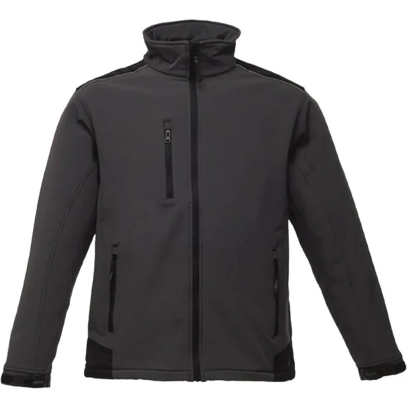 94% Polyester, 6% Elastaan. Slijtvaste warme rug geweven stretch ripstop Softshell stof. Slijtvaste polyamide-overlappingen. Reflecterende bekleding. Durazone-polyamide-overlappingen op slijtplekken. Binnenritsbeveiliging. 2 onderste zakken met rits en 1 borstzak met rits.
