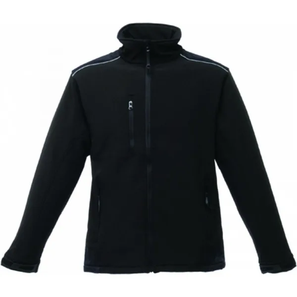 94% Polyester, 6% Elastaan. Slijtvaste warme rug geweven stretch ripstop Softshell stof. Slijtvaste polyamide-overlappingen. Reflecterende bekleding. Durazone-polyamide-overlappingen op slijtplekken. Binnenritsbeveiliging. 2 onderste zakken met rits en 1 borstzak met rits.