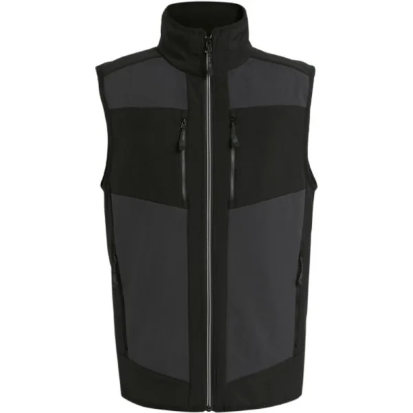 Stof: Softshell. Ontwerp: Kleurenblok. Mouwtype: Mouwloos. Halslijn: Staande Kraag. Zakken: 2 borstzakken, 2 zijzakken, ritssluiting. Bevestiging: Volledige ritssluiting. XS: 36 in. S: 38 in. M: 40 in. L: 42 in. XL: 44 in. XXL: 48 in. 3XL: 51 in.