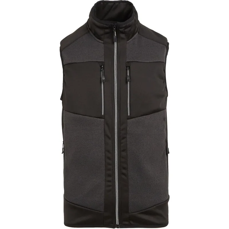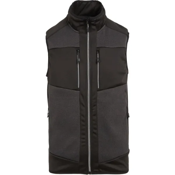 Materiaal: Polyester. Stof: Extol Stretch, Gebreid. Ontwerp: Contrastpaneel. Halsuitsnijding: Hoge Hals, Stretch Boord. Binnenritsbescherming, Stretchboord aan armsgaten en zoom. Mouwtype: Mouwloos. Pasvorm: Goede pasvorm. Zakken: 2 borstzakken, 2 zijzakken, ritssluiting. Bevestiging: Contrasterende ritssluiting, volledige ritssluiting. Duurzaamheid: Gemaakt van gerecycled materiaal.