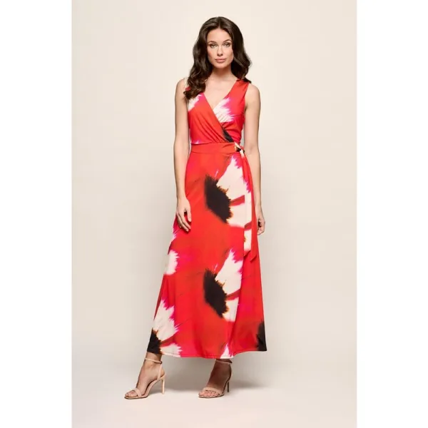 Zomerse mouwloze maxi jurk met rood abstract dessinMaak een stijlvol statement met de Reggy jurk van Mart Visser in een opvallende rood multi kleurstelling. Deze maxi jurk is uitgevoerd in een warm palet van dieprood, koraal en contrasterend off-white, wat zorgt voor een krachtige, elegante en energieke uitstraling. Het abstracte dessin is speels en willekeurig over de stof verdeeld, waardoor iedere jurk een unieke look heeft. Of je nu een zomers tuinfeest bezoekt of een chic diner op de planning hebt staan, deze enkellange maxi jurk combineert designerstijl met optimaal draagcomfort. De jurk is gemaakt van hoogwaardige stretch jersey, waardoor de stof zacht aanvoelt op de huid en soepel met het lichaam meebeweegt. Dankzij de comfortabele kwaliteit behoudt de jurk bovendien moeiteloos zijn mooie pasvorm gedurende de dag. De blinde ritssluiting aan de achterzijde zorgt voor een strakke en elegante afwerking, waardoor de jurk mooi aansluit op het lichaam. Fashion tip: de Reggy jurk is verkrijgbaar in meerdere kleuren en prints — ontdek jouw favoriete variant.
