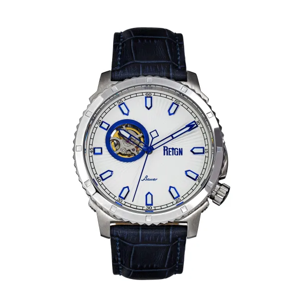 Reign Bauer automatisch semi-skelet lederen band horloge