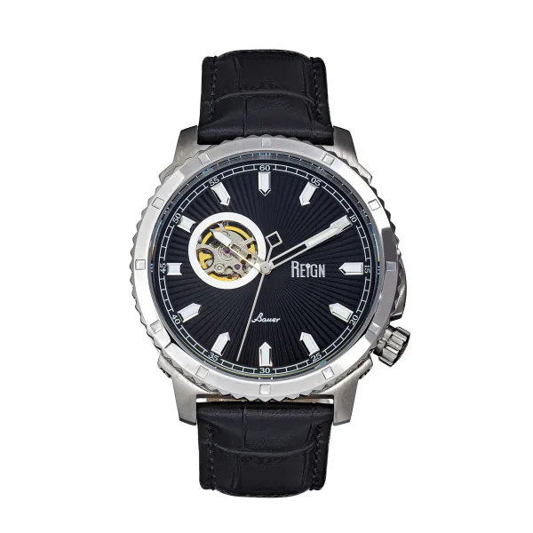 Reign Bauer automatisch semi-skelet lederen band horloge