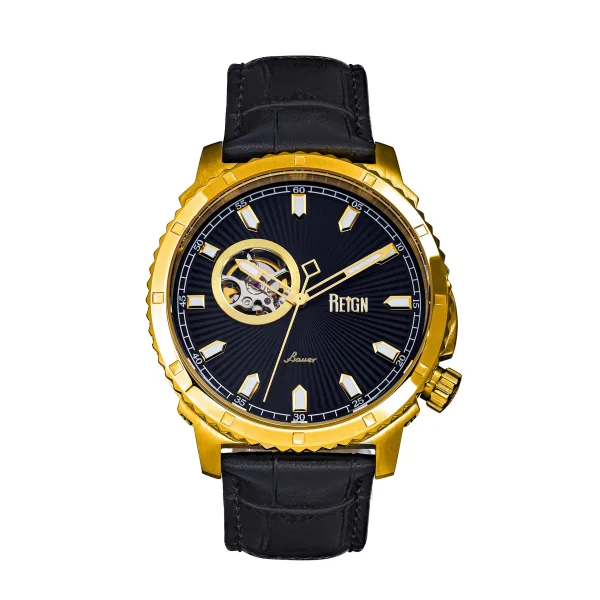 Reign Bauer automatisch semi-skelet lederen band horloge