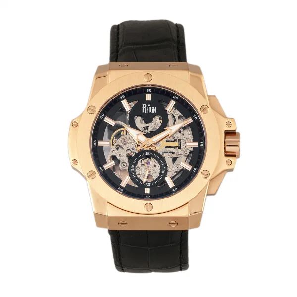 Reign Commodus automatisch skelet horloge met leren band