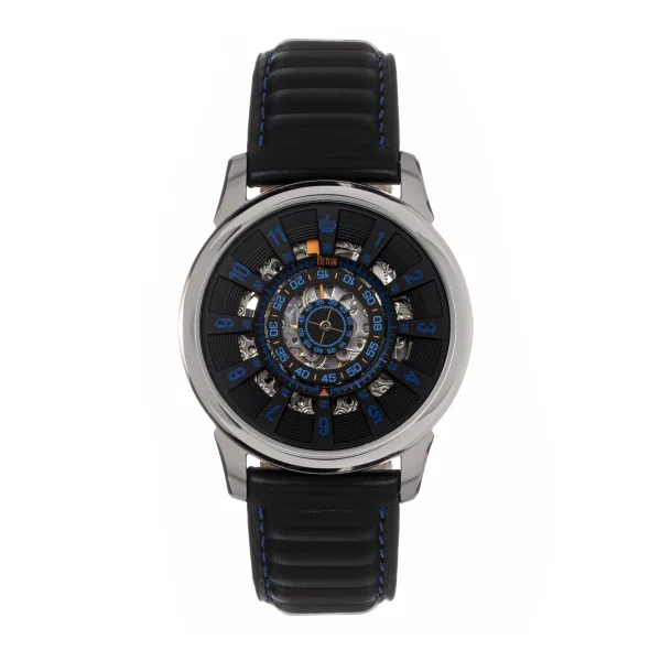 316L roestvrijstalen behuizing van chirurgische kwaliteit; Chinees 2653 automatisch uurwerk; Juweellagers: 24 juwelen; 41 uur gangreserve; Slagen per uur (BPH): 21600/uur; Saffiergecoat mineraal kristal; Semi-skelet wijzerplaat; Observatie Caseback om beweging te bekijken; Logo-gegraveerde kroon; Echt lederen band; 42 mm kastdiameter; 10ATM waterbestendigheid;