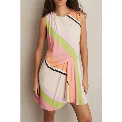 Reiss Block Stripe Print Short Dress Pink/green Prijzen