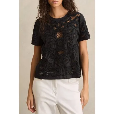 Reiss Floral Cut Out Top Black