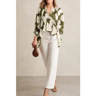 Reiss Floral Swing Top Ivory/green