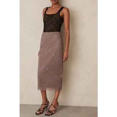 Reiss Lace Skirt Taupe Brown