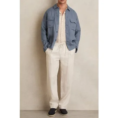 Reiss Ls Linen Twin Pocket Overshirt Airforce Blue