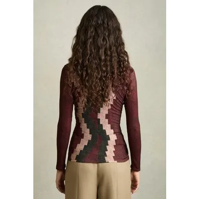 Reiss Printed Top Burgundy
