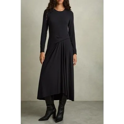 Reiss Ruched Plain Midi Navy