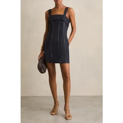Reiss Short Contrast Stitch Linen Dress Navy Prijzen