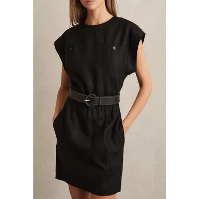 Reiss Short Sleeve Linen Dress Black Prijzen