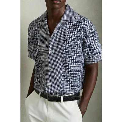 Reiss Ss Geo Jacquard Colour Block Cuban Shirt Navy/white