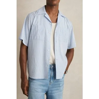 Reiss Ss Stripe Twin Pocket Cuban Shirt Soft Blue/white