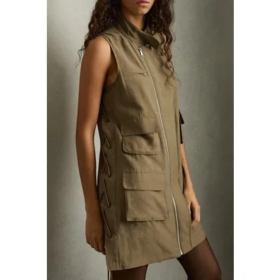 Reiss Utility Linen Dress Khaki