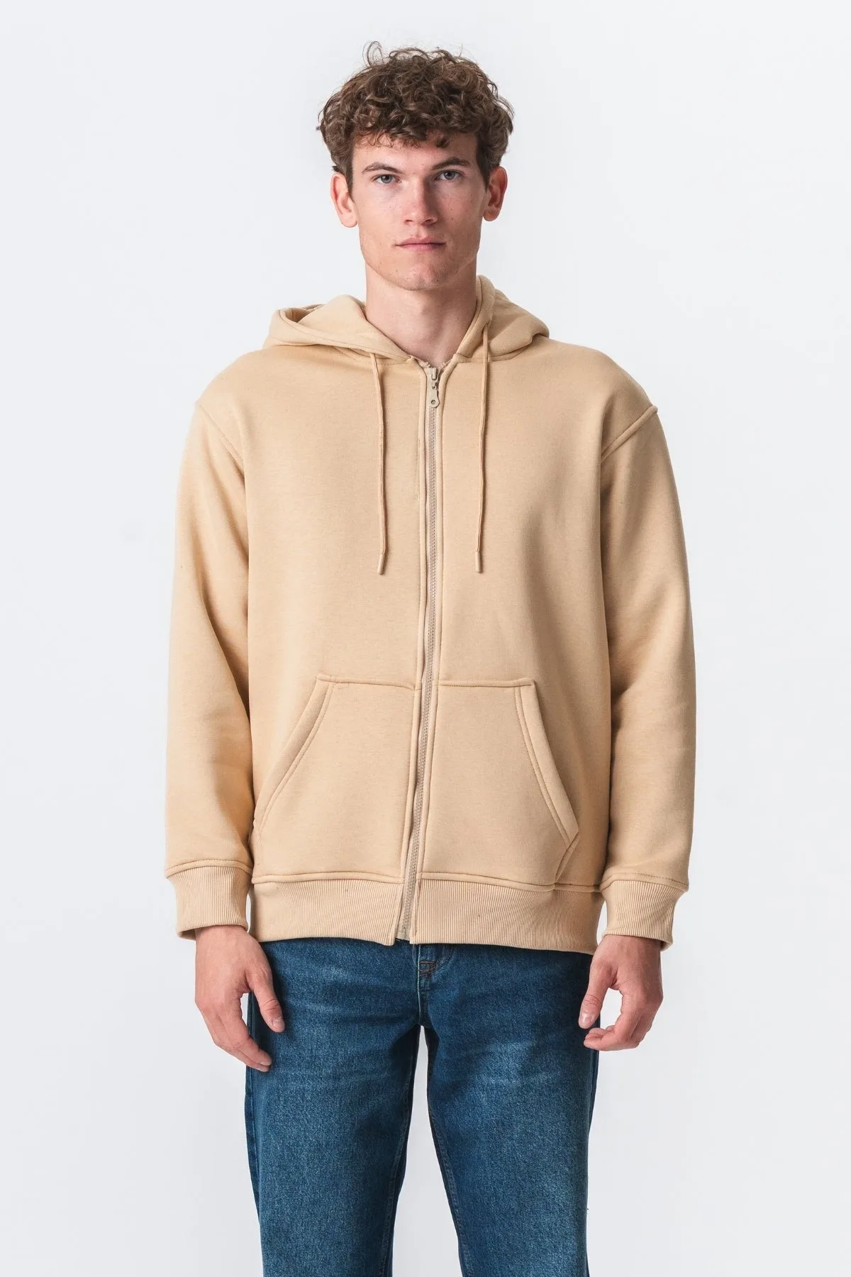 Relaxed Zip Hoodie – Beige