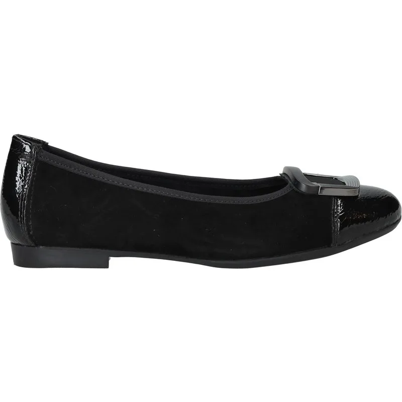 Deze Remonte Ballerina's zijn voor Dames in de kleur Zwart. De schoenen zijn gemaakt van het materiaal Suède;Kunstleer en de voering is gemaakt van . De voetbreedte van de schoenen is F.