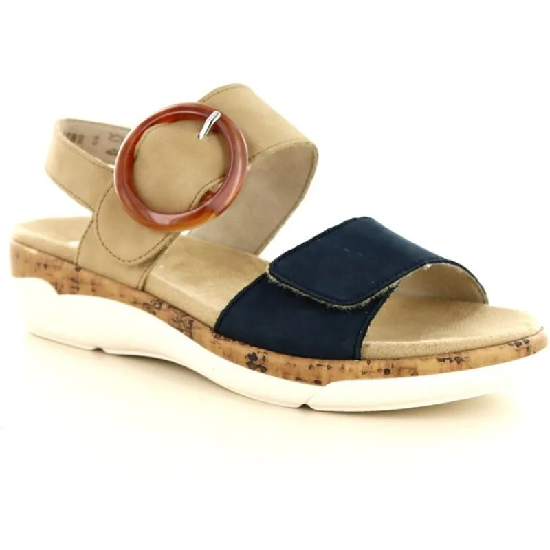 De R6853 van Rieker is een mooie sandaal gemaakt van synthetisch materiaal, voor dames. Deze sandaal is uitgevoerd in de kleur 60 pazifik/sand. De sluiting is door middel van een klittenband. Merk: RiekerArtikel: R6853Kleur: 60 pazifik/sandType: SandaalUitneembaar voetbed: NeeSluiting: KlittenbandMateriaal: Synthetisch