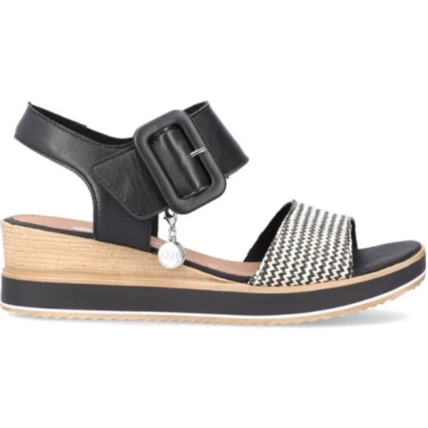 Artikel D6453 in kleur 01-Zwart-Crema is een prachtige zwarte sandaal, voor dames, van het merk Remonte. De zool is van rubber. De voering is gedeeltelijk leer. De voetwijdte is G. Remonte maakt een zeer uitgebreide collectie comfortabel schoeisel. De veterschoenen, instappers, pumps en laarzen zijn praktisch allemaal voorzien van een uitneembaar voetbed. Remonte maakt al ruim 100 jaar hoogwaardig handgemaakt schoeisel. Door gebruik te maken van soepele materialen en buigzame zolen creeert Remonte een uitstekend loopcomfort. Remonte heeft een optimale prijs/kwaliteit verhouding.