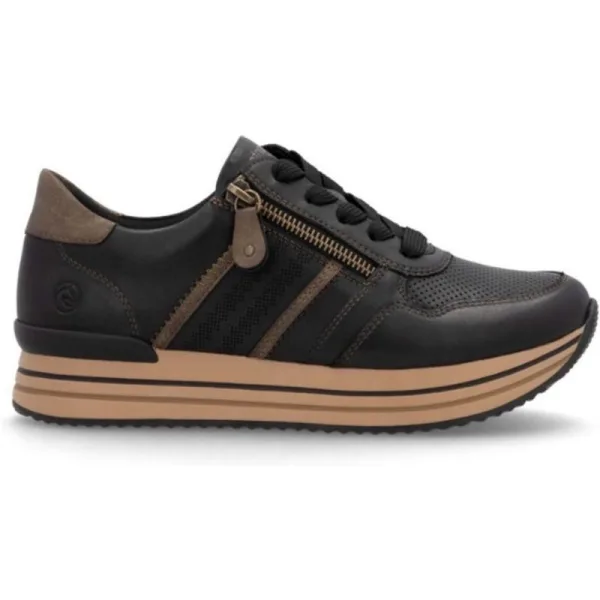 Artikel D1318 in kleur 03-Zwart-Brown is een prachtige zwarte veterschoen, voor dames, van het merk Remonte. De zool is van rubber. De voering is textiel. De voetwijdte is G. Deze veterschoen is voorzien van een uitneembaar voetbed. Remonte maakt een zeer uitgebreide collectie comfortabel schoeisel. De veterschoenen, instappers, pumps en laarzen zijn praktisch allemaal voorzien van een uitneembaar voetbed. Remonte maakt al ruim 100 jaar hoogwaardig handgemaakt schoeisel. Door gebruik te maken van soepele materialen en buigzame zolen creeert Remonte een uitstekend loopcomfort. Remonte heeft een optimale prijs/kwaliteit verhouding.