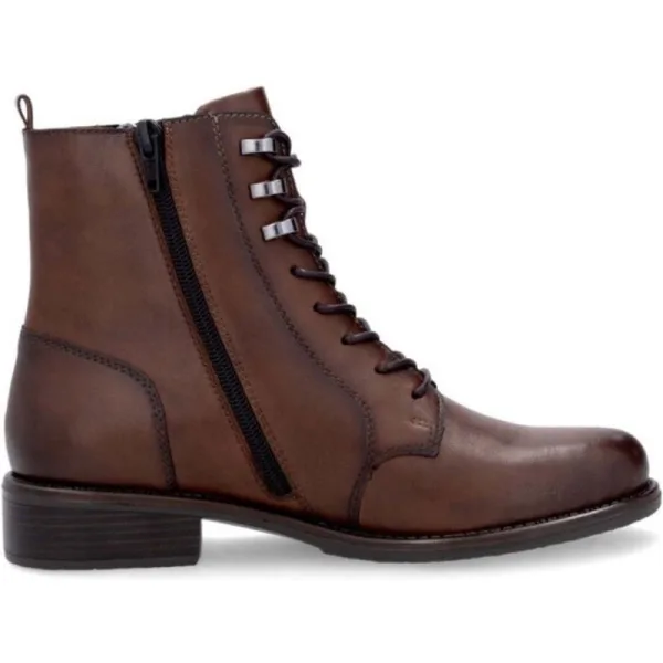 Artikel D0F82 in kleur 22-Chestnut is een prachtige bruine veterschoen, voor dames, van het merk Remonte. De zool is van rubber. De voetwijdte is standaard. Remonte maakt een zeer uitgebreide collectie comfortabel schoeisel. De veterschoenen, instappers, pumps en laarzen zijn praktisch allemaal voorzien van een uitneembaar voetbed. Remonte maakt al ruim 100 jaar hoogwaardig handgemaakt schoeisel. Door gebruik te maken van soepele materialen en buigzame zolen creeert Remonte een uitstekend loopcomfort. Remonte heeft een optimale prijs/kwaliteit verhouding.