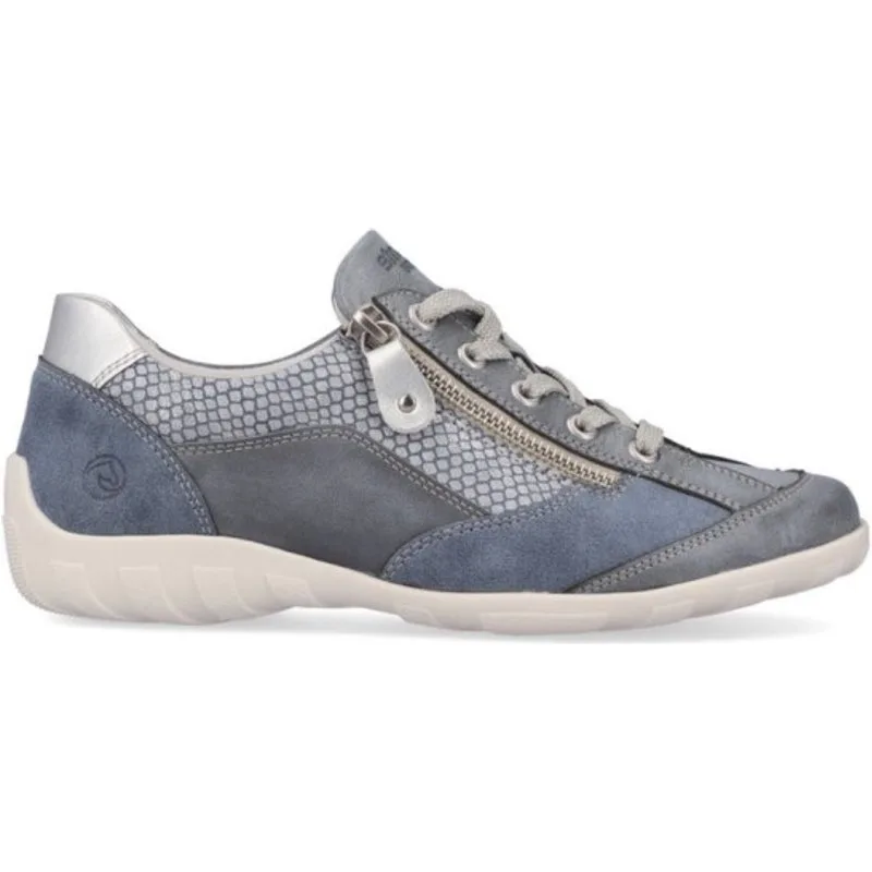 Artikel R3410 in kleur 14-Blu-Adria-Silver is een prachtige blauwe veterschoen, voor dames, van het merk Remonte. De zool is van rubber. De voering is textiel. De voetwijdte is G. Deze veterschoen is voorzien van een uitneembaar voetbed. Remonte maakt een zeer uitgebreide collectie comfortabel schoeisel. De veterschoenen, instappers, pumps en laarzen zijn praktisch allemaal voorzien van een uitneembaar voetbed. Remonte maakt al ruim 100 jaar hoogwaardig handgemaakt schoeisel. Door gebruik te maken van soepele materialen en buigzame zolen creeert Remonte een uitstekend loopcomfort. Remonte heeft een optimale prijs/kwaliteit verhouding.