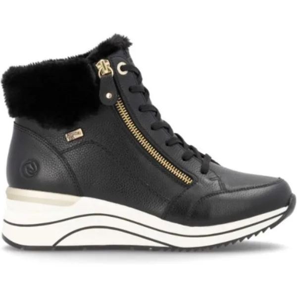 Artikel D0T77 in kleur 02-Zwart-Nero is een prachtige zwarte veterschoen, voor dames, van het merk Remonte. De zool is van rubber. De voetwijdte is H. Remonte maakt een zeer uitgebreide collectie comfortabel schoeisel. De veterschoenen, instappers, pumps en laarzen zijn praktisch allemaal voorzien van een uitneembaar voetbed. Remonte maakt al ruim 100 jaar hoogwaardig handgemaakt schoeisel. Door gebruik te maken van soepele materialen en buigzame zolen creeert Remonte een uitstekend loopcomfort. Remonte heeft een optimale prijs/kwaliteit verhouding.