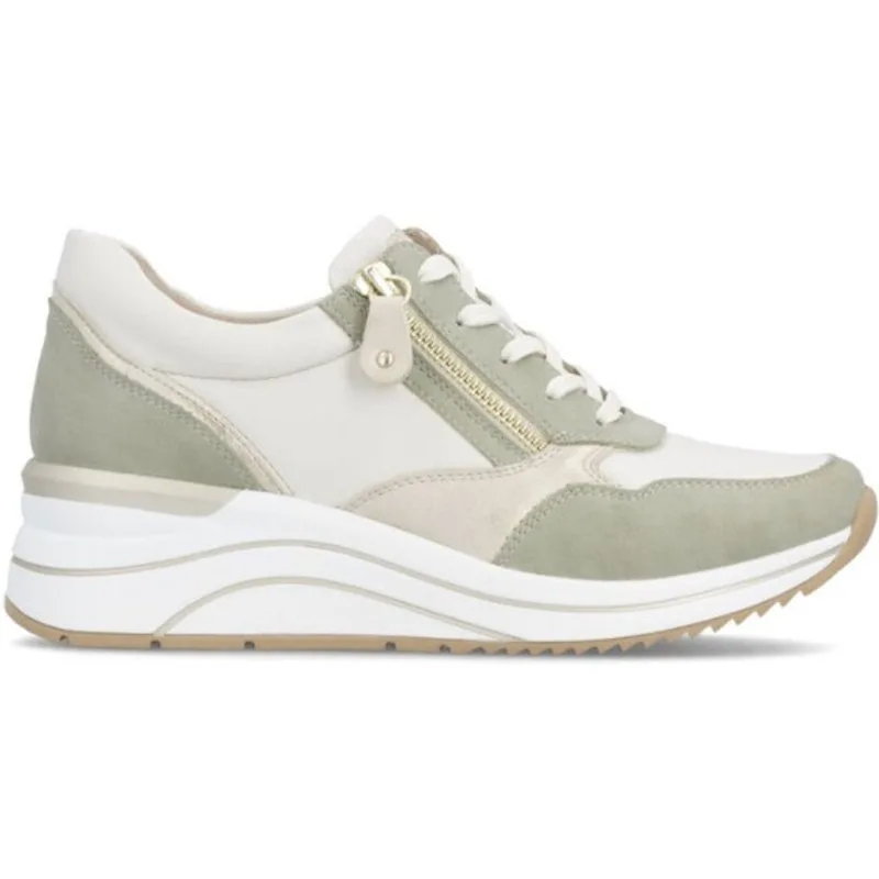 Artikel D0T01 in kleur 82-Salbei-Offwhite-Muschel is een prachtige groene veterschoen, voor dames, van het merk Remonte. De zool is van rubber. De voering is textiel. De voetwijdte is H. Deze veterschoen is voorzien van een uitneembaar voetbed. Remonte maakt een zeer uitgebreide collectie comfortabel schoeisel. De veterschoenen, instappers, pumps en laarzen zijn praktisch allemaal voorzien van een uitneembaar voetbed. Remonte maakt al ruim 100 jaar hoogwaardig handgemaakt schoeisel. Door gebruik te maken van soepele materialen en buigzame zolen creeert Remonte een uitstekend loopcomfort. Remonte heeft een optimale prijs/kwaliteit verhouding.