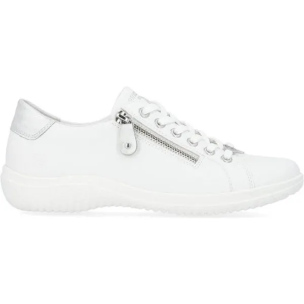 Artikel D1E03 in kleur 80-Weiss-Ice is een prachtige witte veterschoen, voor dames, van het merk Remonte. De zool is van rubber. De voering is textiel. De voetwijdte is G. Deze veterschoen is voorzien van een uitneembaar voetbed. Remonte maakt een zeer uitgebreide collectie comfortabel schoeisel. De veterschoenen, instappers, pumps en laarzen zijn praktisch allemaal voorzien van een uitneembaar voetbed. Remonte maakt al ruim 100 jaar hoogwaardig handgemaakt schoeisel. Door gebruik te maken van soepele materialen en buigzame zolen creeert Remonte een uitstekend loopcomfort. Remonte heeft een optimale prijs/kwaliteit verhouding.