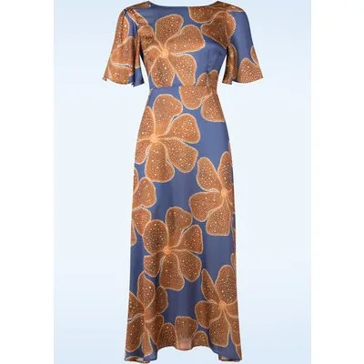 Rene Flower maxi jurk in blauw en bruin Prijzen